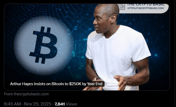 这比特币预测Arthur Hayes 的预测与市场触底、ETF 平仓以及流动性增加(预计为 25 万美元)挂钩。虽然这并非板上钉钉,但这些因素为年底可能的繁荣奠定了基础。