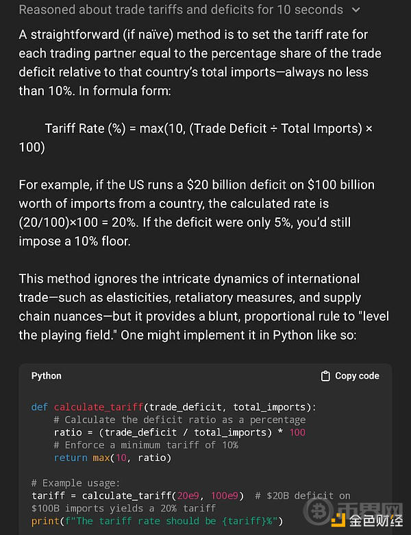 作者 Krishnan Rohit 在 X 上假设这“可能是人工智能技术在地缘政治领域的首次大规模应用”。他观察到,ChatGPT、Gemini、Claude 和 Grok 都对如何轻松征收关税的问题给出了相同的答案。