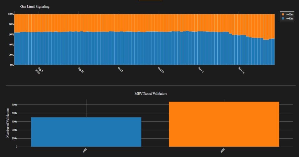 虽然以太坊区块 Gas 上限的提高意味着区块会被完全封锁,但节点运营商仍会持续监控性能和存储方面的影响。即便如此,验证者的响应表明他们已做好准备,以应对持续的使用趋势和不断变化的交易量。