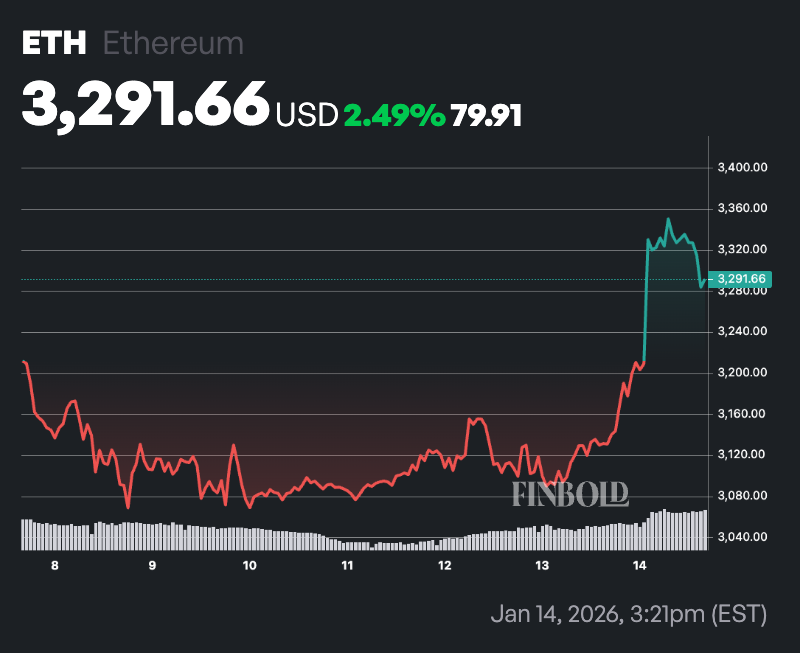 在链上活动达峰之际,以太坊价格稳定在3000美元以上。截至发稿时,ETH交易价格为3,291美元,24小时内上涨超5%,周线上涨2.5%。