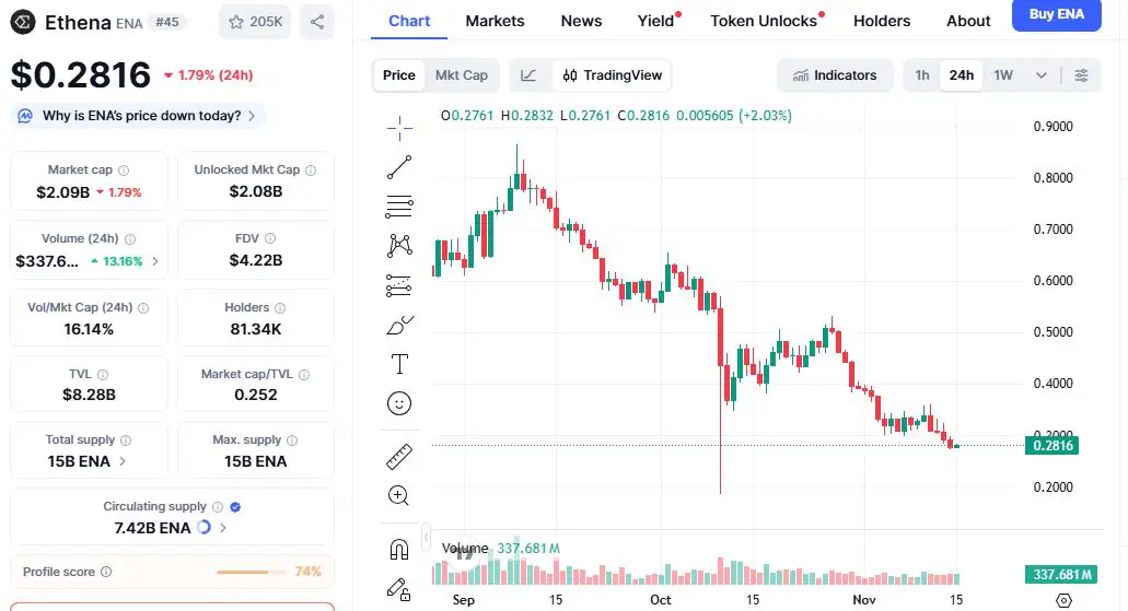 Ethena的交易价格接近11月15日,价格为0.28美元由于其合成美元USDe和强劲的……,它一直受到持续关注。去中心化金融