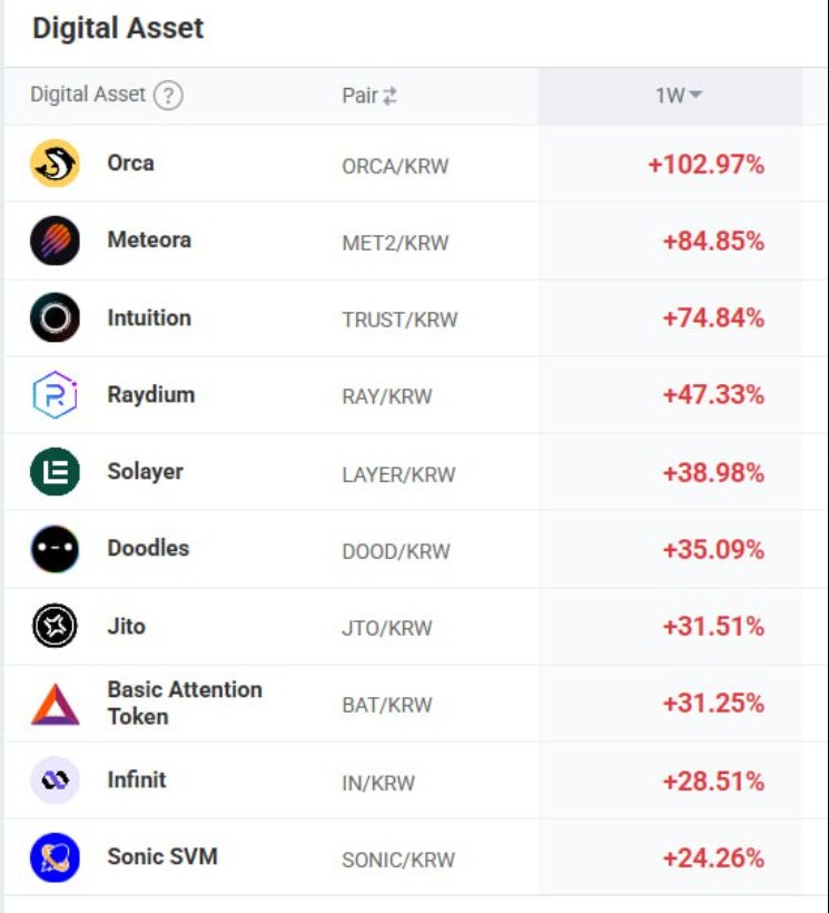 攻击发生后,Upbit 平台上与 Solana 相关的代币价格飙升,因为提现功能被暂停。例如: