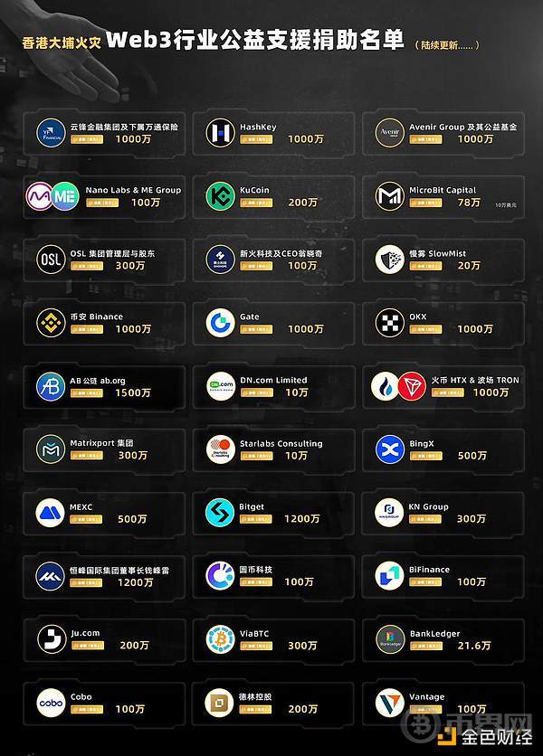 香港大埔火灾 Web3 行业公益支援捐助名单(陆续更新)