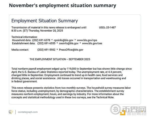 比特币在2025年创下新高后,在11月下旬几周来一直难以保持涨势。与此同时,美国的劳动力市场数据开始发出另一种警示,不是就业岗位骤减,而是明显降温。