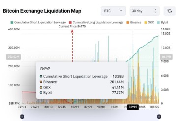 短曝光这一主题已经发展成为一个重要的讨论要点.加密RU据报道,如果比特币价格达到 96,900 美元,预计将有近 102 亿美元的做空杠杆资产被清算。这一事件在加密货币新闻界引起了广泛关注,交易员们正密切关注加密货币生态系统中快速流动性事件发生的可能性增加。