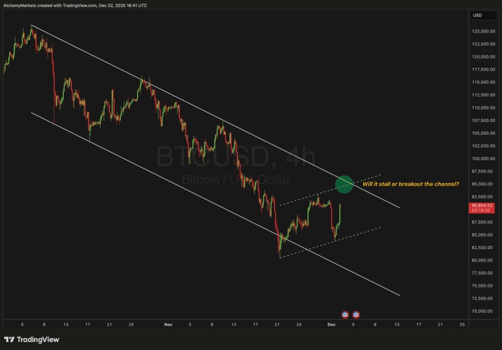 看着4 小时 BTC/USD 图表价格走势一直被困在……之中下降通道自10月初以来,价格持续走低,高点和低点不断降低。但最近,情况开始发生变化——看来我们可能……底部接近下边界该频道。自那以后,我们看到了强劲的上涨动力公牛们已经显露出一些复苏的迹象。