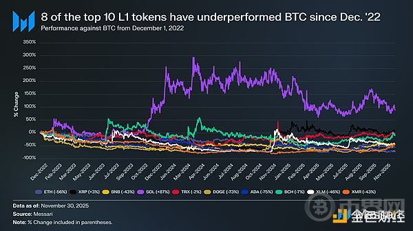 L1代币表现持续逊于比特币