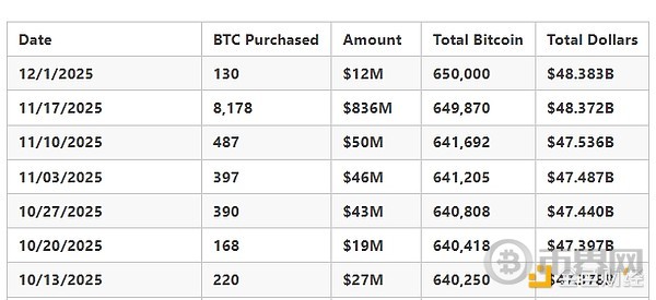 据CryptoQuant发布的报告指出, “Strategy的比特币购买量在2025年之前大幅下降”,并提到自2024年底以来,Strategy的比特币月度购买量显著减少。“月度比特币购买量从2024年峰值时的13.4万枚降至2025年11月的9100枚,而本月至今仅为135枚。24个月的缓冲期清楚地表明了一点:他们正在为熊市做好准备。”