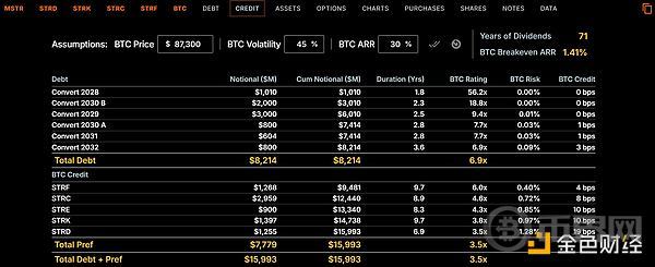 Michael Saylor还强调 Strategy 的资本结构:除了 BTC 自身价值稳固增长外,Strategy 还拥有无比健康的资本结构——企业价值 680 亿美元,储备比特币价值 590 亿美元,LTV(Loan to Value)仅 11%,以现有财务数据计算,股利保证金足以覆盖未来 73 年。