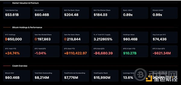 Strategy的财务指标仪表盘。来源:Strategy