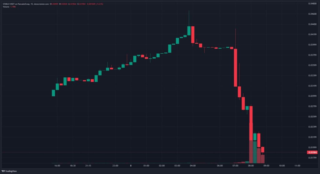 然而,主网上线仅数小时后,该项目便遭遇了严重的技术问题。用户反映无法提取已桥接的 iUSDT,由于 gas 不足无法领取空投的 STABLE 代币,也无法访问官方网站。与此同时,由于普遍指责项目执行不力以及内部人士大量分配代币,代币价格在 PancakeSwap 平台上暴跌超过 98%。