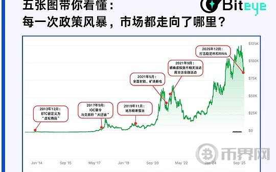 政策的长期效果正在衰减。 除了2013年第一轮监管直接终结了当时的牛市周期外,后续数次强力干预(2017年关停交易所、2021年清退挖矿)都没有改变比特币的长期上行趋势。