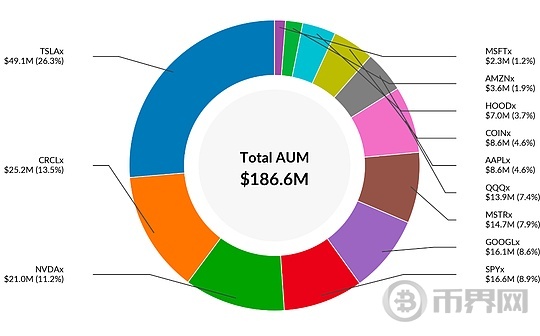 今年6月,Backed Finance在Solana网络上推出了xStocks,将包括苹果(AAPL)、英伟达(NVDA)、特斯拉(TSLA)和标普500指数基金(SPY)在内的60多种美国股票和交易所交易基金(ETF)以可自由转让的SPL代币形式上线。Kraken、Bybit和Gate.io等交易所也已上线这些资产,为全球非美国用户群体提供现货和期货交易。自上线以来,xStocks的资产管理规模(AUM)增长超过9倍,达到约1.86亿美元。