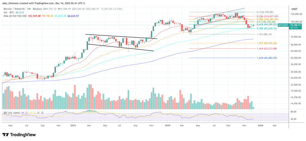 比特币仍面临 0.618 斐波那契回调位的阻力,一周图表 | 来源: