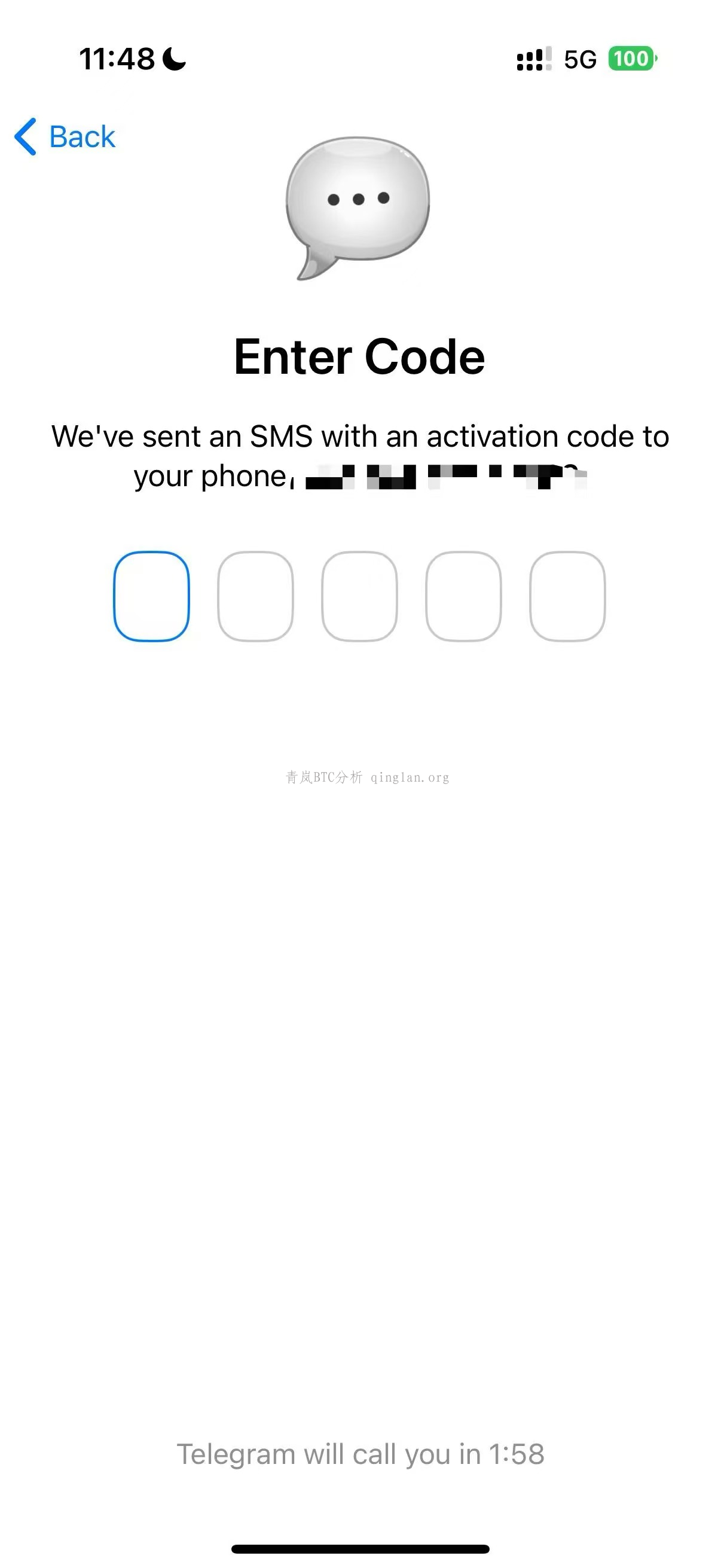 将获取到的临时手机号输入到Telegram的注册页面,Telegram会向该号码发送验证码。