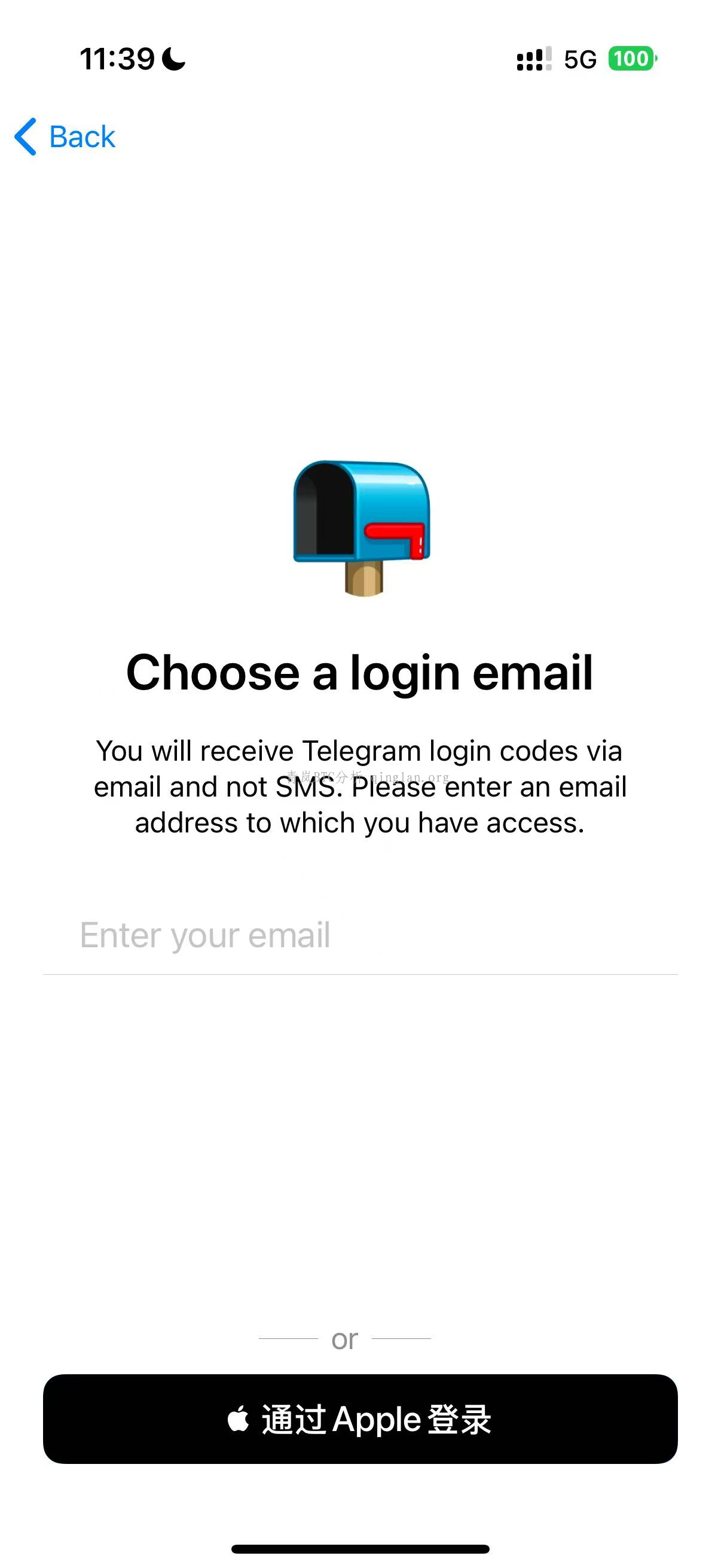 输入你的常用邮箱,然后Telegram会给邮箱发送一个6位的验证码,输入邮箱验证码即可。