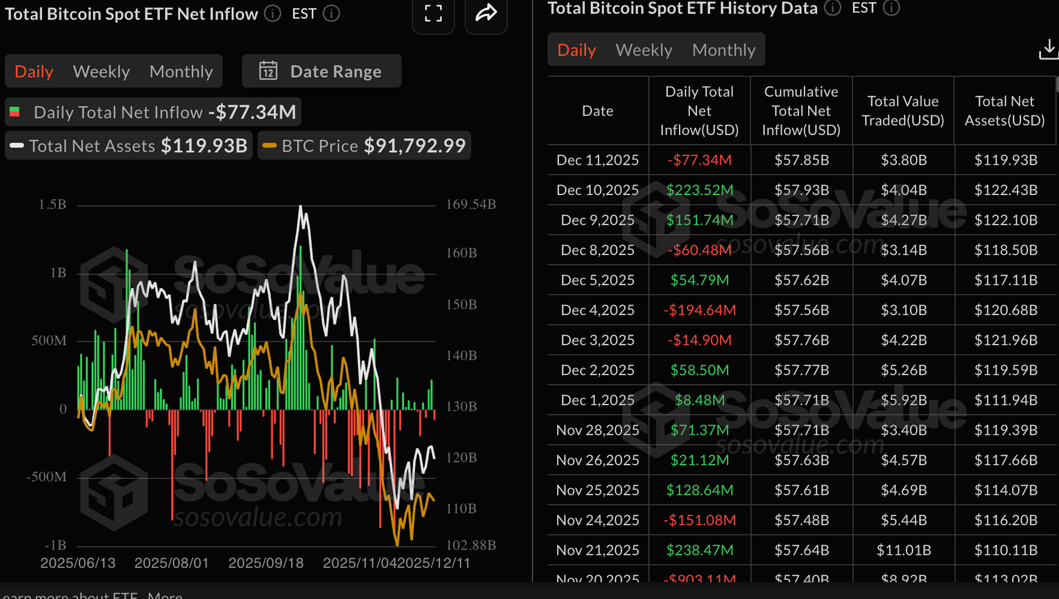 BTC ETF 统计数据 | 来源:SoSoValue