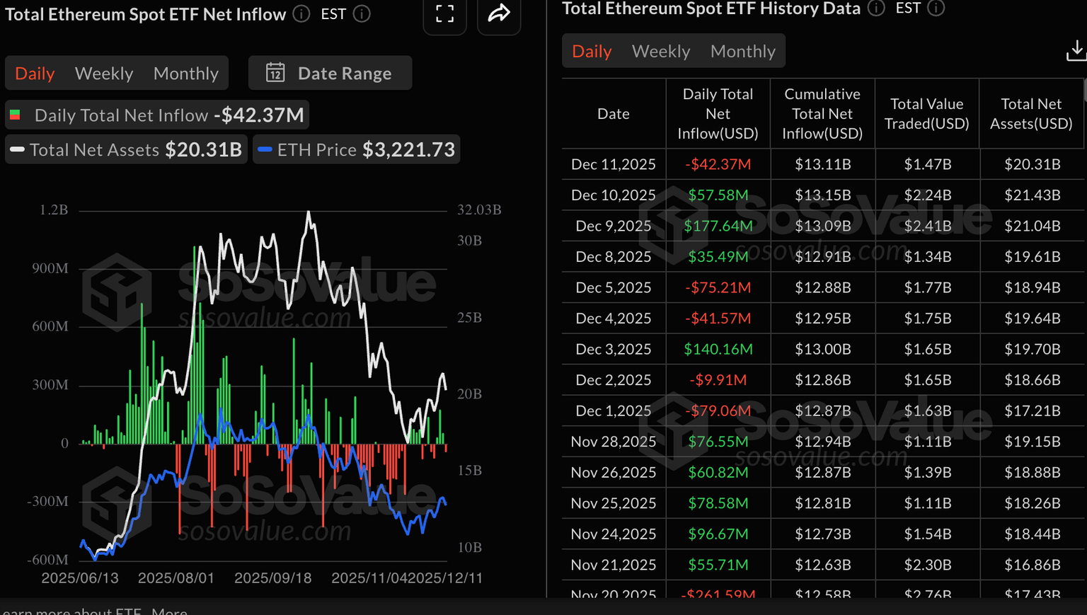 以太坊 ETF 数据统计 | 来源:SoSoValue