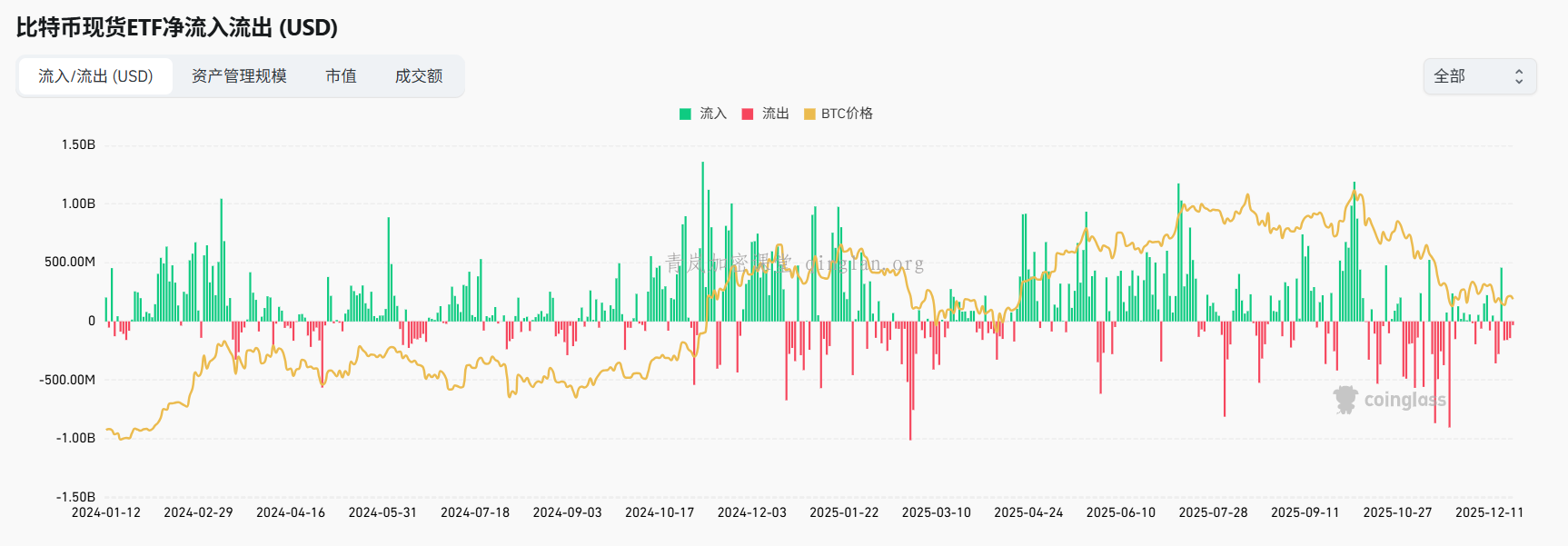 - 比特币作为风险资产的代表,在流动性收紧的大背景下,自然失去了主要的上涨动力。结合我过往跟踪年末市场的经验,这种“宏观数据强→宽松预期降→风险资产承压”的传导逻辑,在年底资金回笼周期里会更明显,往往比平时的影响更持久。这不是短暂的调整,而是对过去一年“宽松预期”的深层重构——最终导致“需求枯竭”,市场根本形不成有效的买盘支撑。