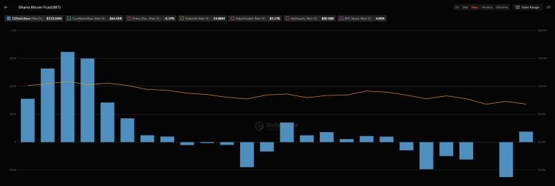 - 贝莱德iShares比特币信托(IBIT)每日资金流动图。来源:SoSoValue