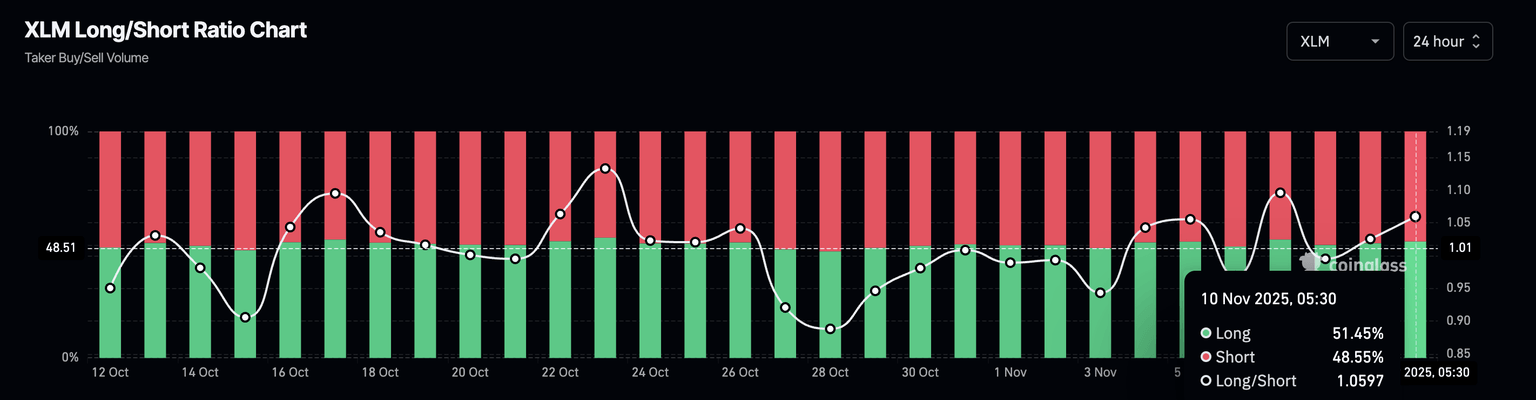 随着更广泛的加密货币受美国政府停摆问题有望解决的提振,市场本周开局强劲。CoinGlass数据显示,XLM期货未平仓合约(OI)为1.3016亿美元,较过去24小时增长11.68%,表明交易员预期价格将进一步上涨。