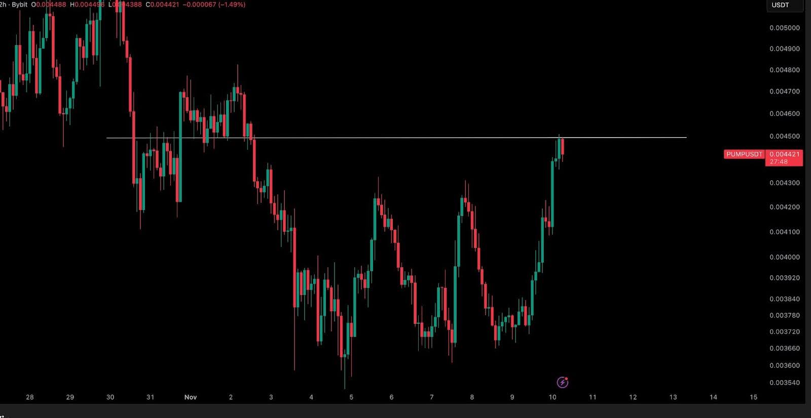 最新的两小时图表显示,PUMPUSDT 从近期低点 0.003600 美元附近大幅反弹。