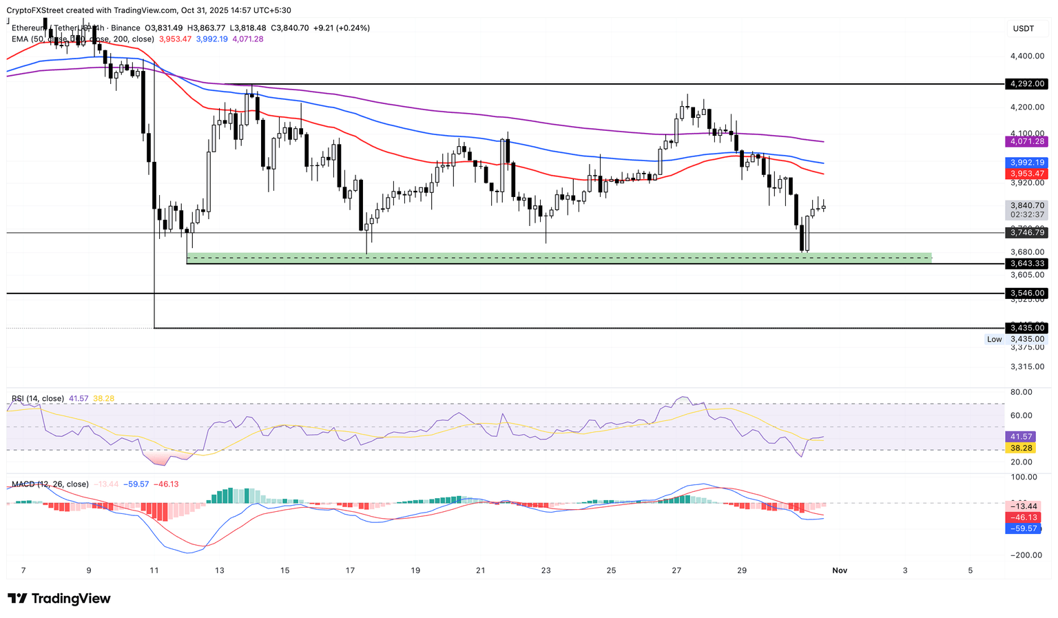 不过,抛售压力激增可能会迫使以太坊重新测试 3650 美元区域。