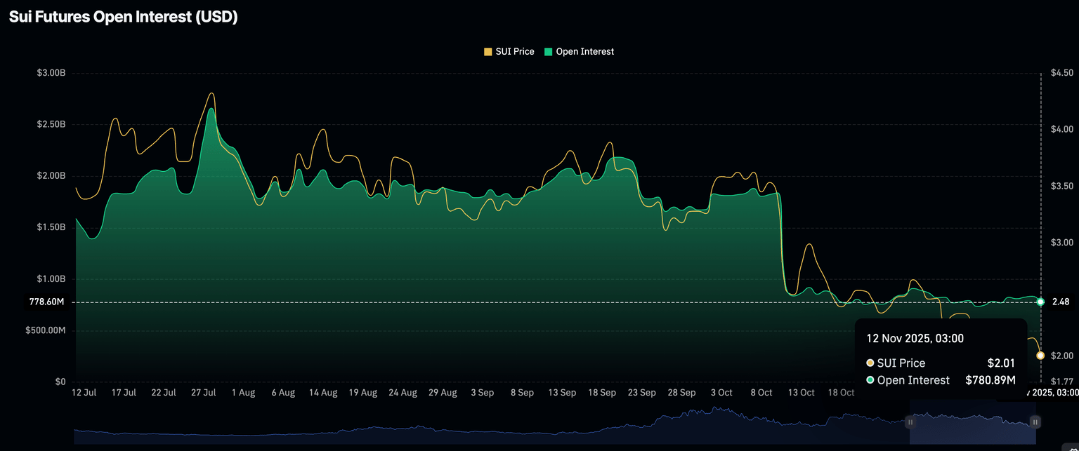- 零售需求依然疲软,SUI 的未平仓合约稳定在 7.81 亿美元。