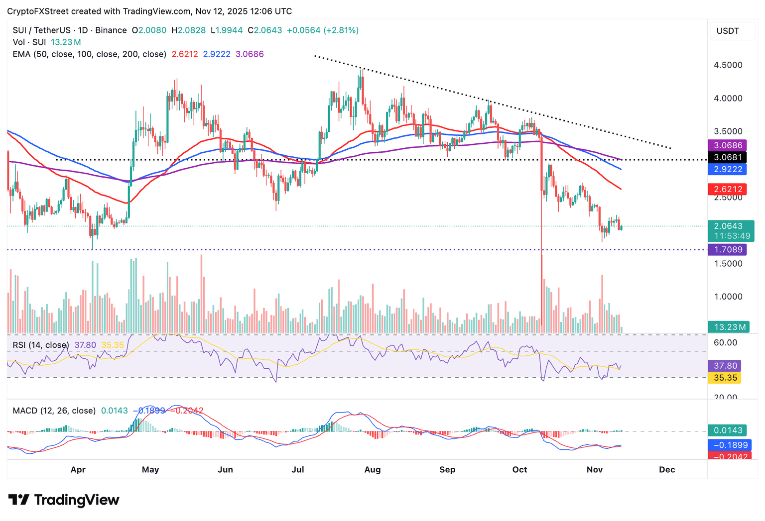 SUI/USDT 日线图