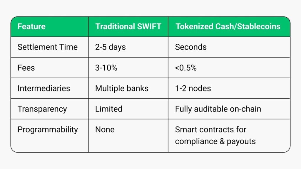 我们不谈理论了。分析师已经证明,代币化支付可以在转账过程中自动运行反洗钱/了解你的客户 (AML/KYC) 检查。无需后台中间人,无需隔夜批量处理,只需对可编程货币进行实时合规即可。