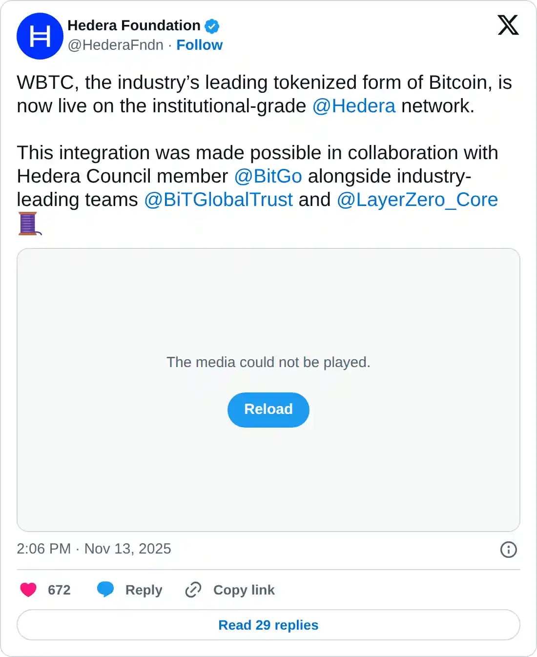 Hedera周四宣布与BitGo和LayerZero合作,整合Wrapped Bitcoin,为网络增加新的流动性层。Hedera的这种创新方法……流动性使用 WBTC(以太坊区块链上 1:1 支持的代币化比特币)而不是美元支持的稳定币,增强了网络上基于 BTC 的去中心化金融 (DeFi) 服务。