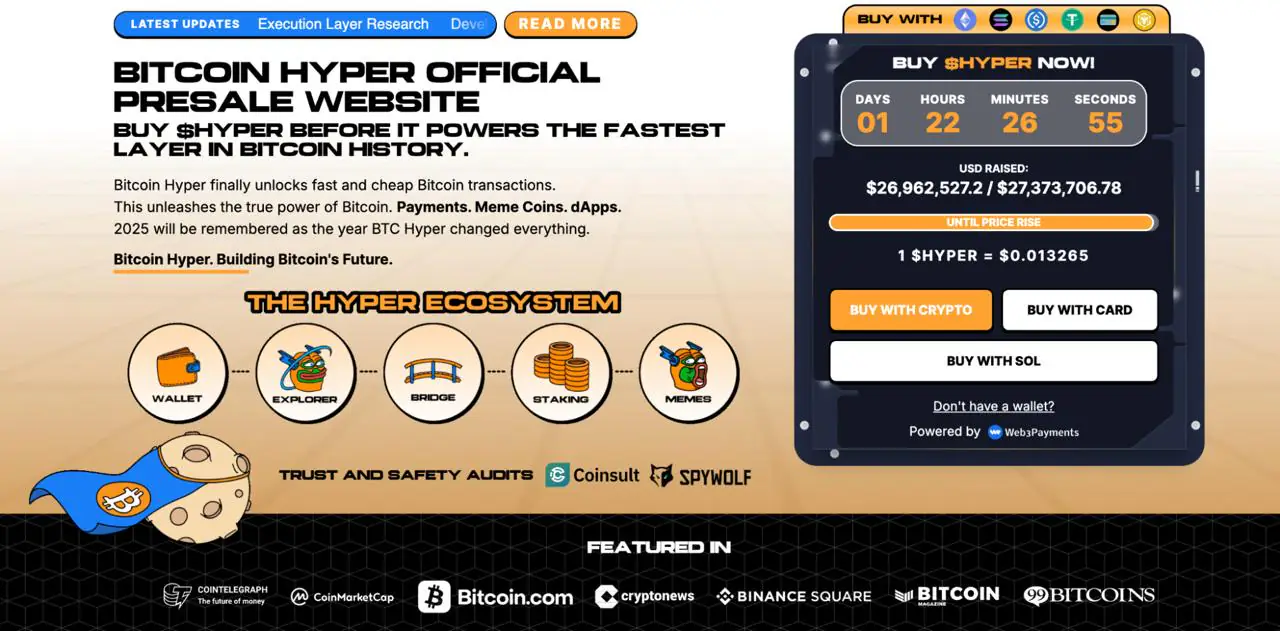 Bitcoin Hyper 致力于将比特币转型为现代支付系统,并作为 2025 年最受瞩目的加密货币预售项目之一而备受关注。该技术能够以极低的费用实现超快的交易速度,力图成为现实世界支付领域的比特币 2.0。