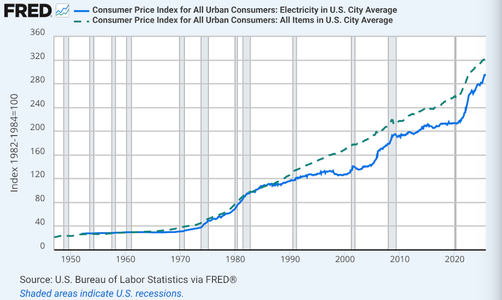 人们担心数据中心会推高电力成本,但根据上文所述,这种情况迄今为止尚未发生——多年来,电价上涨速度一直低于通货膨胀率。此外,证据数据中心的需求甚至可能降低电价上涨——可能是因为需求增加,固定成本可以分摊到更多客户身上。