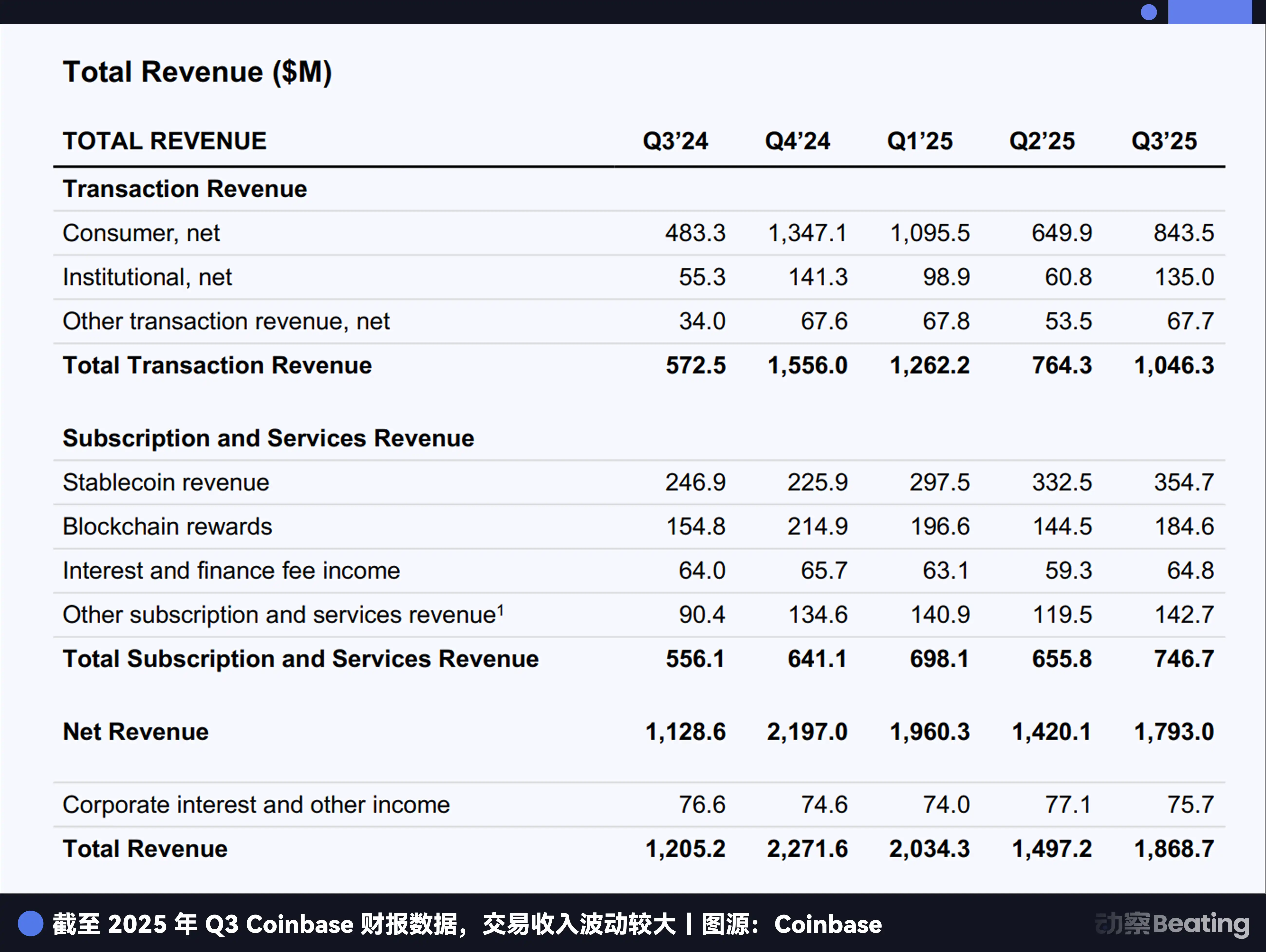 理解阿姆斯特朗的激烈反应,关键在于剖析Coinbase的商业模式转型及其财务依赖。
