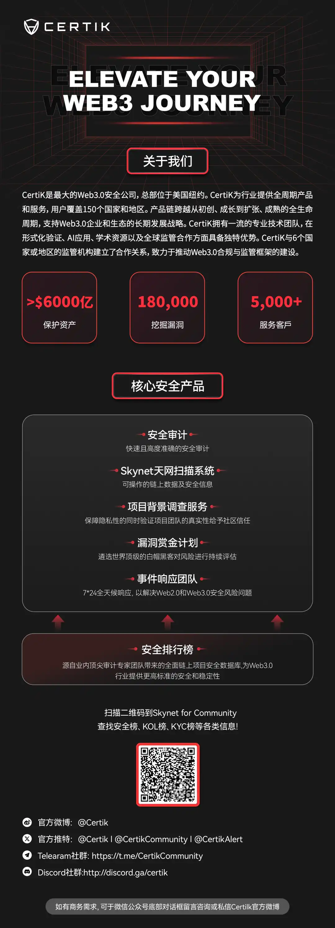 从获得国际顶级经济论坛的关注,到吸引战略资本的深度绑定,CertiK的发展路径清晰地映射出Web3行业的演进趋势:一个由创新驱动、追求速度的早期阶段,正在过渡到一个强调稳健、透明与可信治理的成熟阶段。