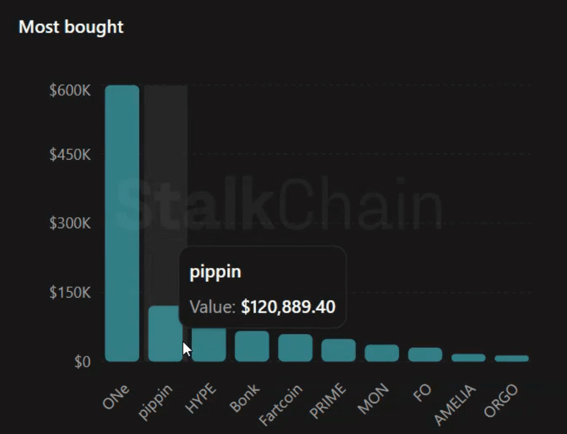 据StalkChain数据,PIPPIN在1月28日成为聪明资金单日购买量最高的代币,成交额达120,889.40美元。大额资金的快速进出也带来了价格被操纵和走势不确定的风险。