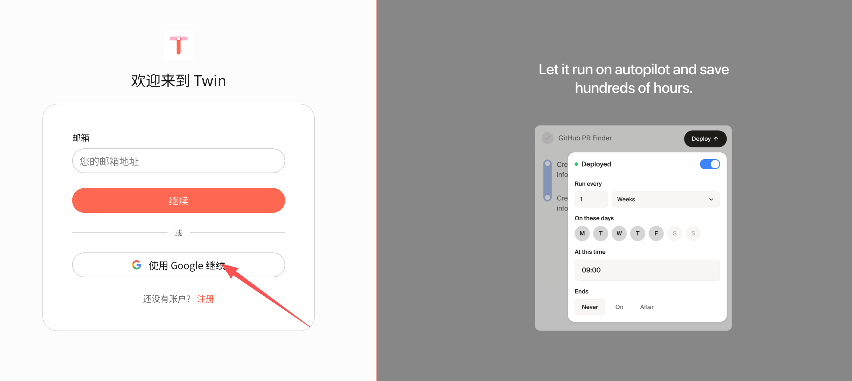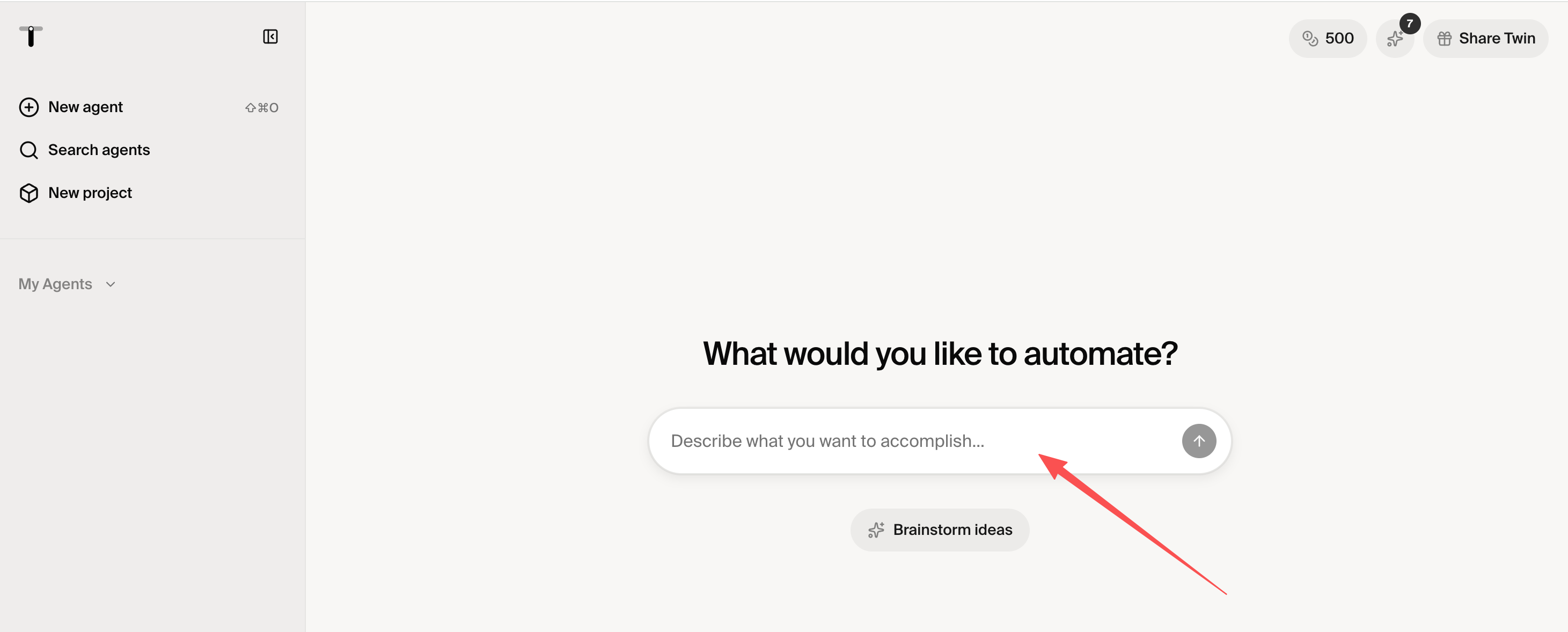 1. 访问Twin构建平台(https://builder.twin.so/),使用谷歌邮箱注册并登录。新用户登录后通常可立即获得500初始积分。