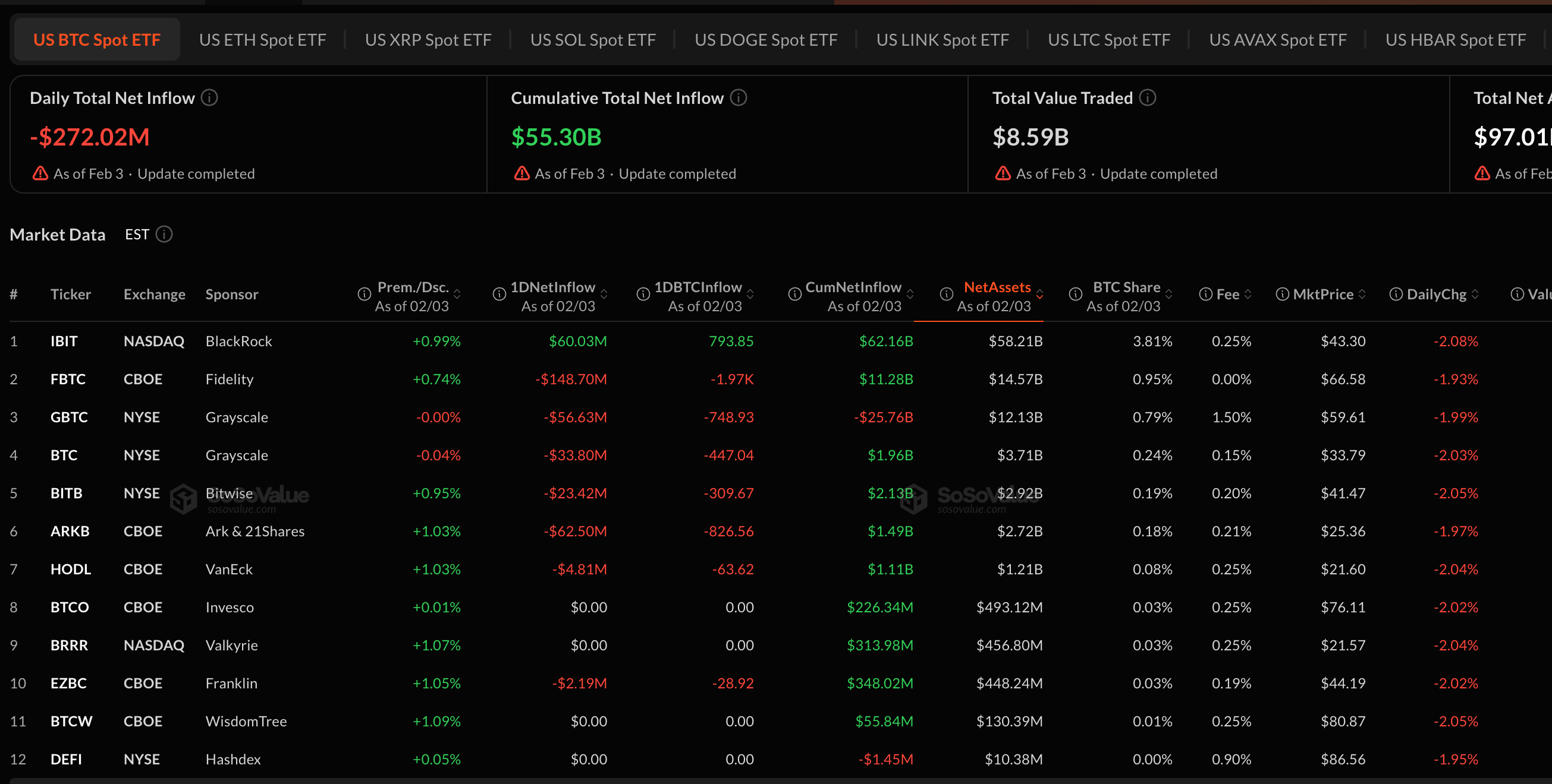 据SoSoValue数据,2月3日美国现货比特币ETF净流出约2.72亿美元。当日比特币价格剧烈波动,一度跌至73,000美元附近,随后反弹至76,000美元以上。