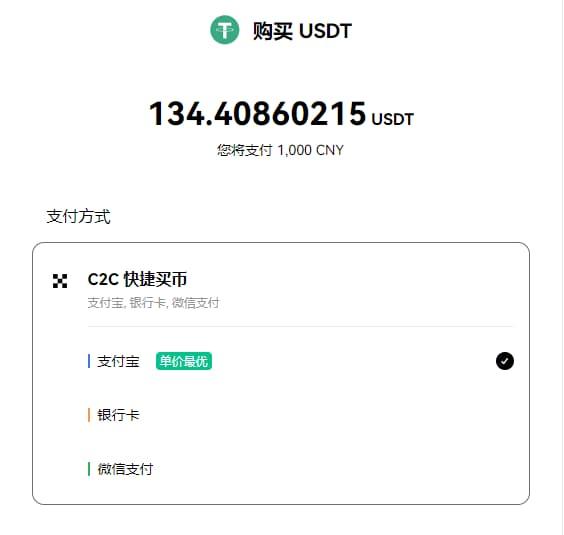 有快捷买币和 C2C 买币两个选项,这两个都可以进行购买,这里我选择快捷买币,进入后如下: