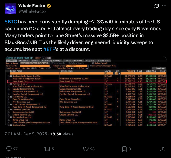 市场将矛头指向Jane Street,因其具备独特的市场地位:
