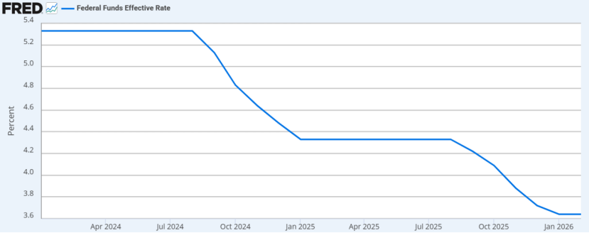 投资者正将目光转向确定性更高的收益来源。自2024年1月起,美联储有效联邦基金利率始终维持在3.6%以上。尽管未来可能降息,但当前的无风险收益率已对链上低利率形成压制。