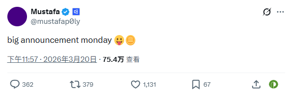 上周六,Polymarket核心团队成员Mustafa在X平台预告,将于本周一发布重要公告。这一预告迅速引发了预测市场社区的广泛猜测。
