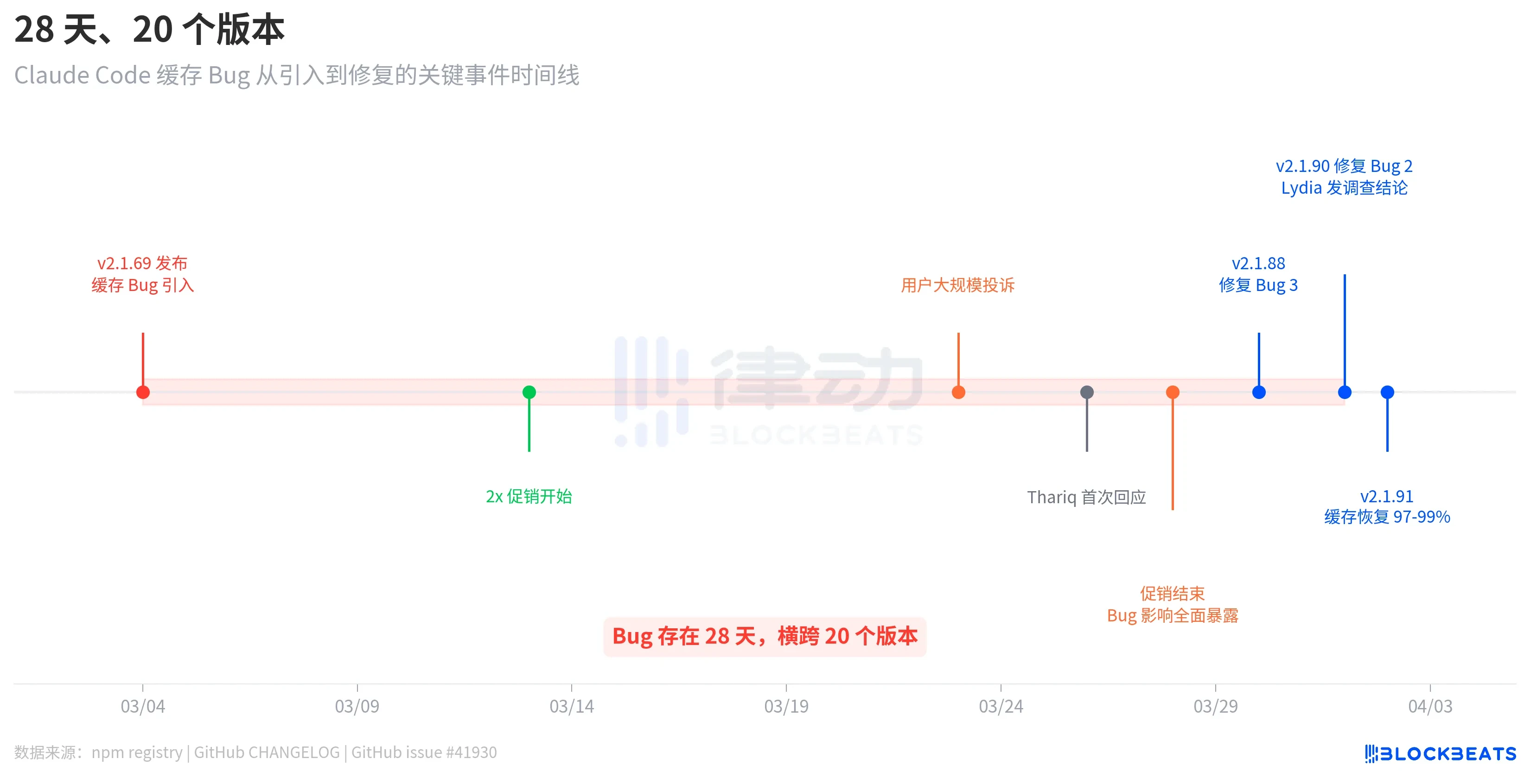 值得注意的是,用户大规模投诉在3月23日左右才集中爆发,距离错误引入已近三周。据GitHub相关议题分析,这很可能是因为Anthropic在3月13日至28日期间推出了非高峰时段额度翻倍的促销活动,暂时掩盖了缓存错误带来的超额消耗。促销结束后,问题才彻底暴露。