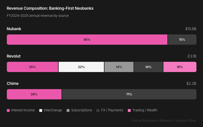 经济模型是首要挑战。历史数据显示,高达76%的传统新银行无法实现盈利。最终脱颖而出的玩家,如Nubank、Revolut和SoFi,其成功并非依赖于支付手续费,而是建立在信贷业务与净利息收入之上。交易费仅仅是获取用户的“入场券”,信贷才是创造利润的核心引擎。
