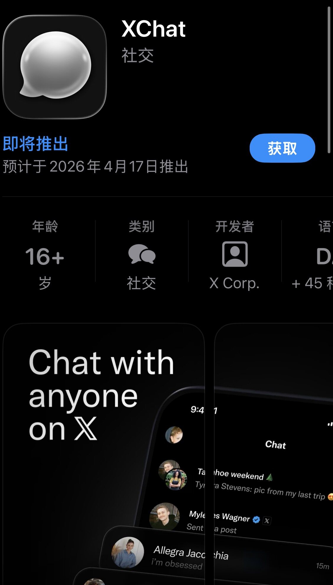 XChat采用端到端加密技术,用户无需手机号,直接绑定X账号即可登录。值得注意的是,该应用支持简体中文界面,中国大陆用户也可通过特定链接预约下载。目前版本要求iOS/iPadOS 26.0及以上系统,安卓版本预计稍后推出。