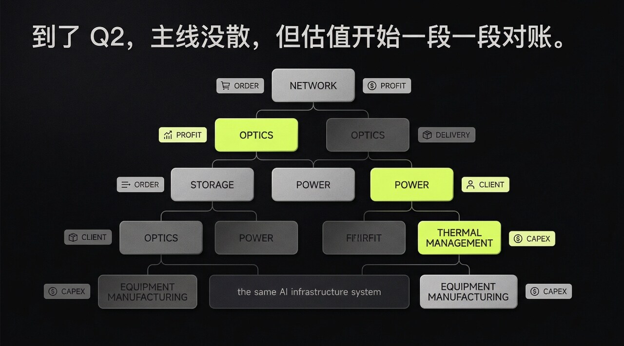 本文清晰地勾勒了AI基建投资从“主题狂欢”到“业绩淬炼”的必然路径。Q1的普涨是认知重塑的过程,市场在为基础设施的长期价值重定价。而Q2的分化,则是资本市场效率的体现,它将区分出真正的产业受益者和短期“蹭热点”者。对于投资者而言,当前阶段需要更精细的显微镜,而非广角镜。重点应放在验证企业是否具备将行业β转化为自身α的能力——包括技术壁垒、客户粘性、供应链地位和卓越的运营效率。AI浪潮带来的产业革命是真实的,但最终能穿越周期、兑现估值的,永远是那些报表经得起推敲的实干家。投资逻辑的切换,往往也是超额收益来源的切换。