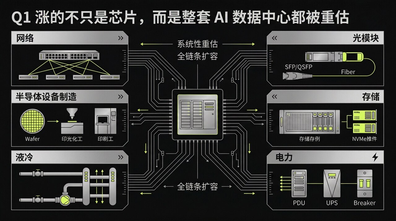 总而言之,Q1的上涨是系统性、结构性的,反映了市场对数据中心全方位、多层次扩容的强烈共识。