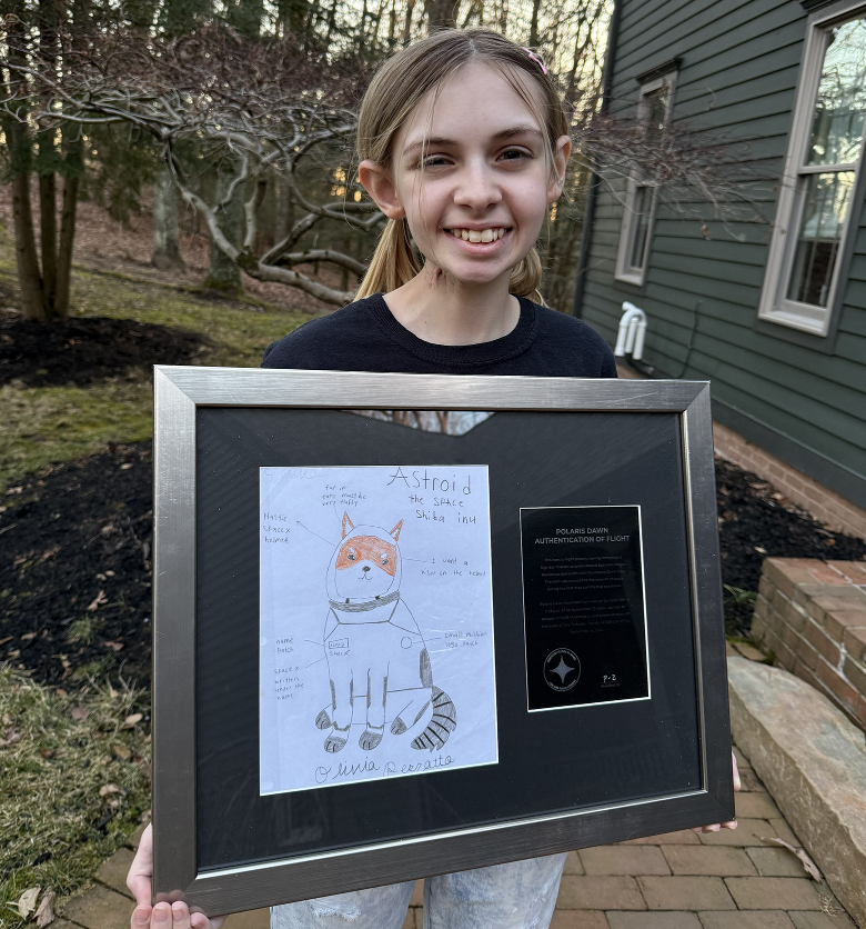 2022年病情缓解后,Liv与航天领域的联结愈发紧密。她受邀为SpaceX的“Polaris”项目设计“零重力指示物”——一个在失重状态下漂浮的玩偶。她交出的作品,便是灵感源于太空与可爱形象的“Asteroid”小柴犬。