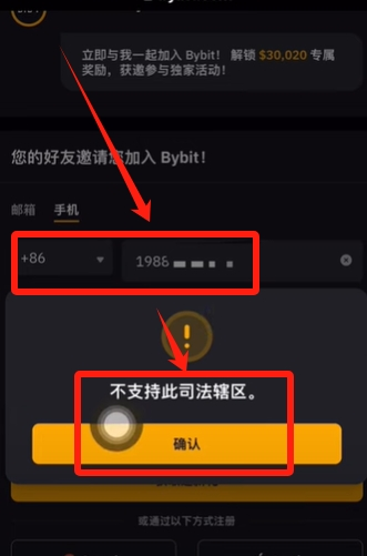 然后来到注册端,我们首先知道大陆86开头手机号是无法注册的,他会显示“不支持此司法辖区”